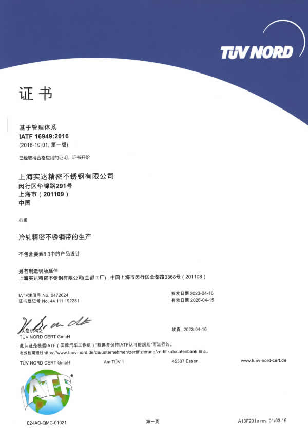實(shí)達(dá)精密通過(guò)ISO9001質(zhì)量、IATF16949汽車質(zhì)量、ISO14001環(huán)境和ISO50001能源管理體系認(rèn)證,擁有自主的精密鋼帶生產(chǎn)技術(shù)知識(shí)產(chǎn)權(quán),是高新技術(shù)企業(yè)、上海市外商投資先進(jìn)技術(shù)企業(yè),曾連續(xù)八年被評(píng)為上海市外商投資雙優(yōu)企業(yè);是安全生產(chǎn)標(biāo)準(zhǔn)化二級(jí)企業(yè)、海關(guān)總署中國(guó)外貿(mào)出口先導(dǎo)指數(shù)(ELI)樣本企業(yè)、上海海關(guān)(第一批)AEO高級(jí)認(rèn)證企業(yè);是上海市守合同重信用企業(yè)、上海市和諧勞動(dòng)關(guān)系達(dá)標(biāo)企業(yè);獲評(píng)上海市著名商標(biāo)、閔行區(qū)經(jīng)濟(jì)突出貢獻(xiàn)企業(yè)、閔行區(qū)文明單位榮譽(yù)稱號(hào)。