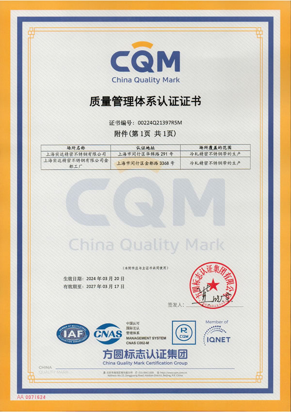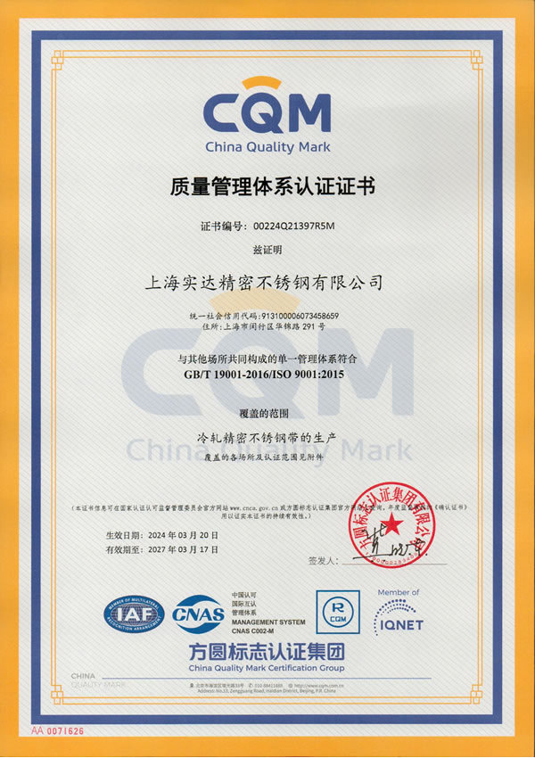 實(shí)達(dá)精密位于上海市莘莊工業(yè)區(qū)內(nèi),占地面積約12萬(wàn)平方米,建筑面積約7萬(wàn)平方米。公司具有世界先進(jìn)水平的廿輥森吉米爾軋機(jī)、拉伸矯直機(jī)、光亮退火爐、脫脂清洗機(jī)組和精密裁剪機(jī)組等工藝設(shè)備,引進(jìn)ALLEGHENY不銹鋼精密帶材的生產(chǎn)技術(shù),專業(yè)生產(chǎn)AISI 200、300、400系列、厚度0.03~1.50mm、寬度3~1250mm,各種調(diào)質(zhì)硬度、表面狀態(tài)、或特殊要求的冷軋不銹 鋼精密帶材產(chǎn)品。